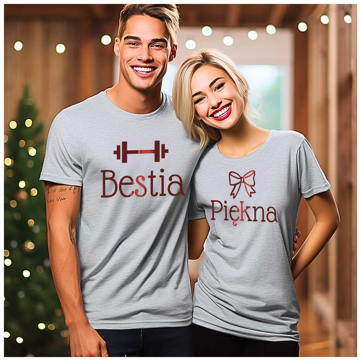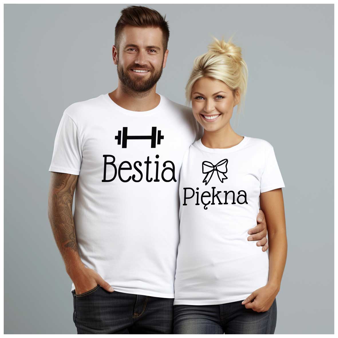 KOSZULKI DLA MĘŻA I ŻONY KOSZULKI PIĘKNA I BESTIA PREZENT NA WALENTYNKI MĄŻ ŻONA
