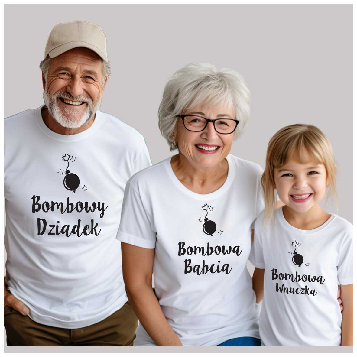 Podkreślcie wyjątkową więź międzypokoleniową dzięki zestawowi dopasowanych koszulek rodzinnych! Ten trzyosobowy komplet zawiera koszulki dla babci, dziadka oraz wnuka lub wnuczki (do wyboru rozmiary dziecięce – od niemowlaka do nastolatka). Wspólny nadruk lub tematyczne napisy sprawią, że Wasza rodzina będzie wyglądać spójnie i stylowo – na co dzień, na wakacjach, podczas rodzinnych spotkań czy sesji zdjęciowych.