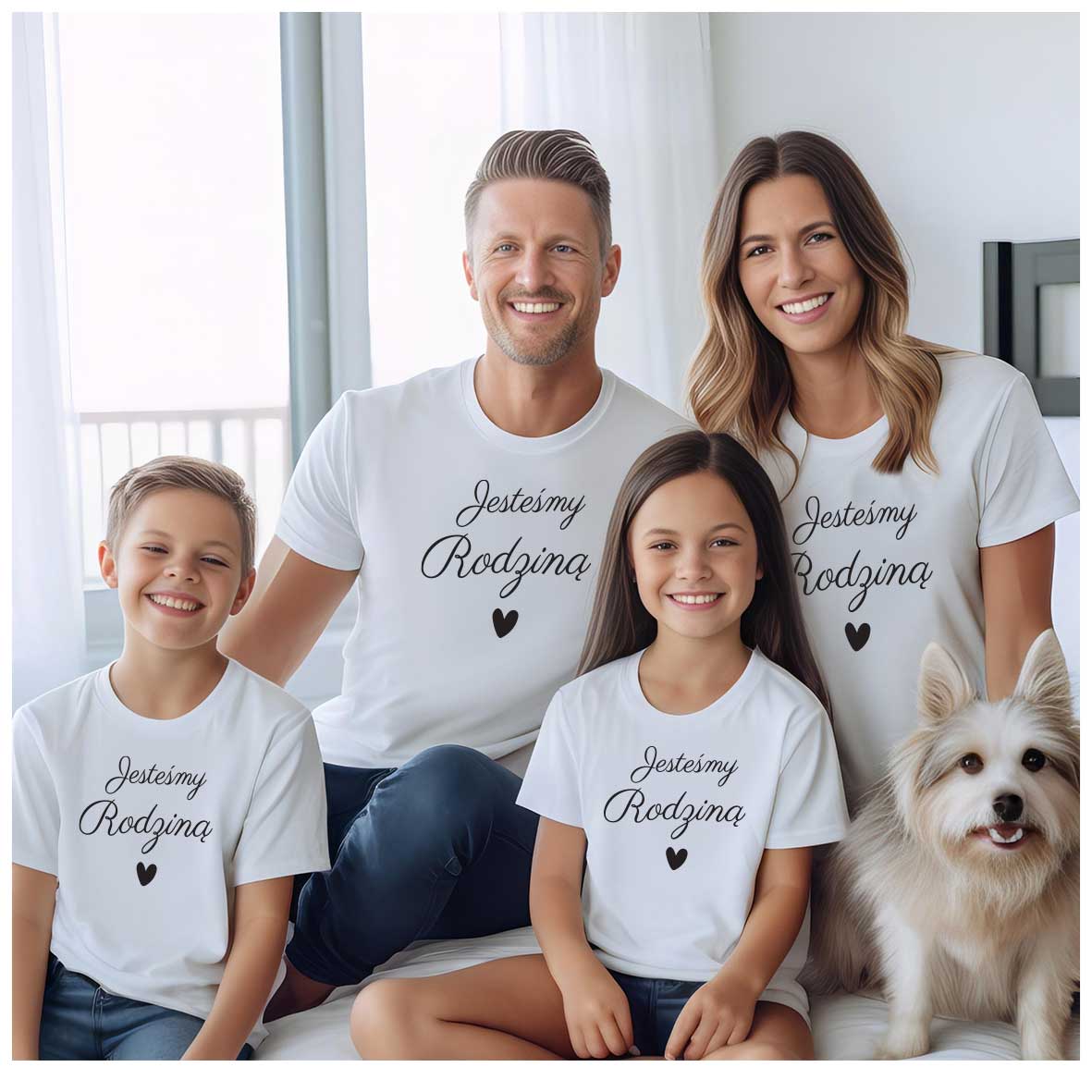 Podkreślcie Waszą wyjątkową więź dzięki zestawowi dopasowanych koszulek rodzinnych! Ten czteroosobowy komplet zawiera koszulki dla mamy, taty oraz dwójki dzieci (do wyboru rozmiary dziecięce od niemowlaka do nastolatka). Wspólny nadruk lub tematyczne napisy sprawią, że Wasza rodzina będzie wyglądać spójnie i stylowo – na co dzień, na wakacjach, na sesji zdjęciowej czy podczas rodzinnych uroczystości.