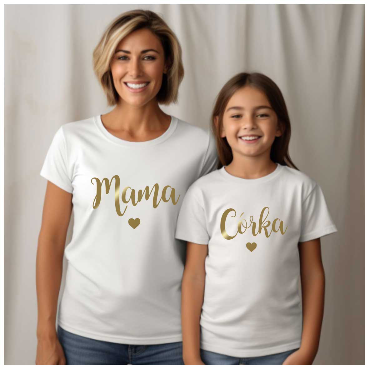 Mama córka + serce – Zestaw koszulek dla Mamy i Córki