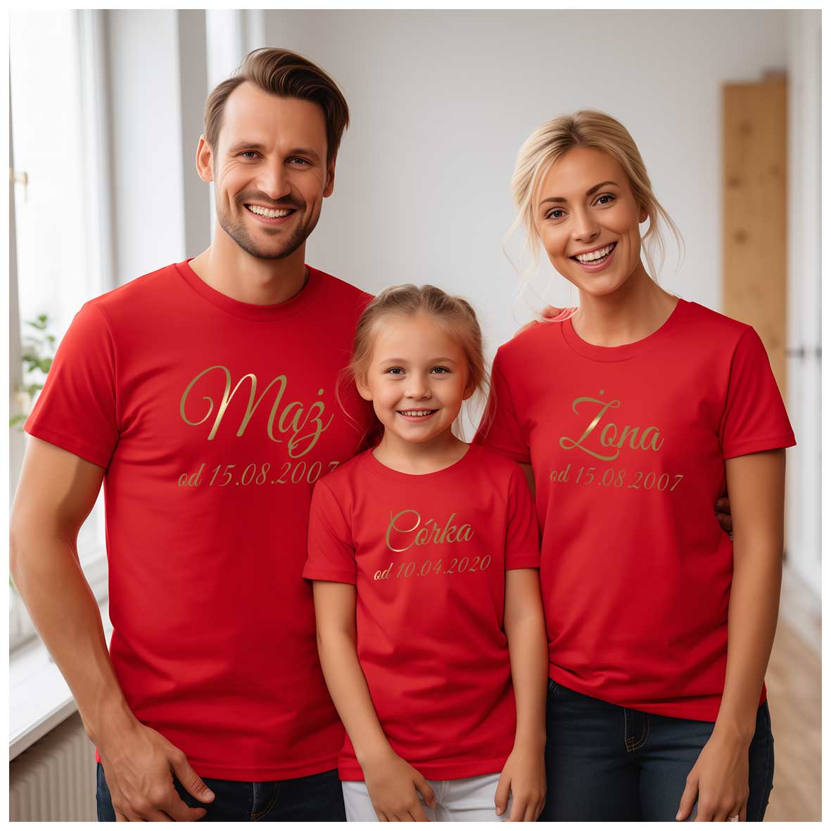 Podkreślcie Waszą wyjątkową więź dzięki zestawowi dopasowanych koszulek rodzinnych! Ten trzyosobowy komplet zawiera koszulki dla mamy, taty oraz dziecka (do wyboru rozmiary dziecięce od niemowlaka do nastolatka). Wspólny nadruk lub tematyczne napisy sprawią, że Wasza rodzina będzie wyglądać spójnie i stylowo – na co dzień, na wakacjach, na sesji zdjęciowej czy podczas rodzinnych uroczystości.