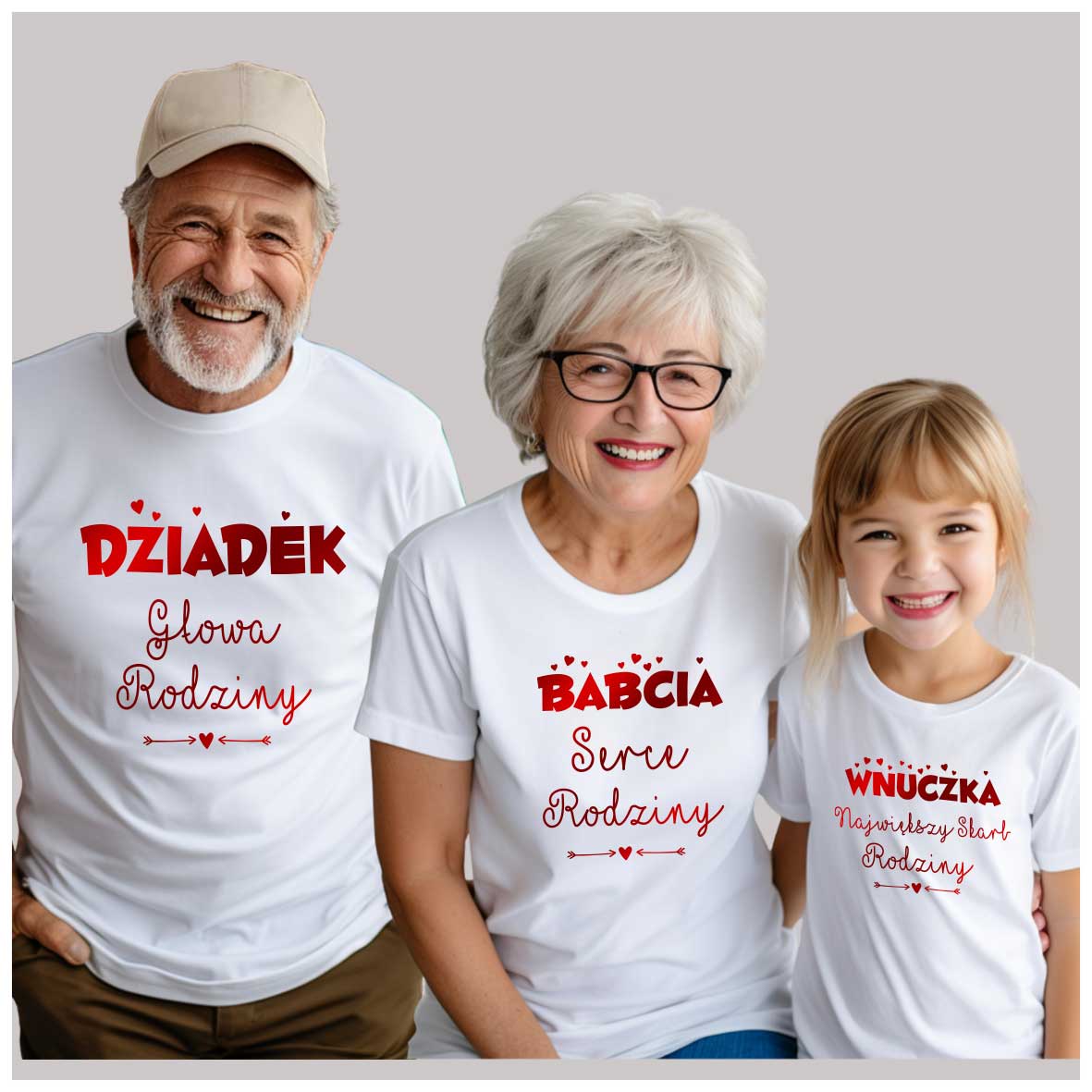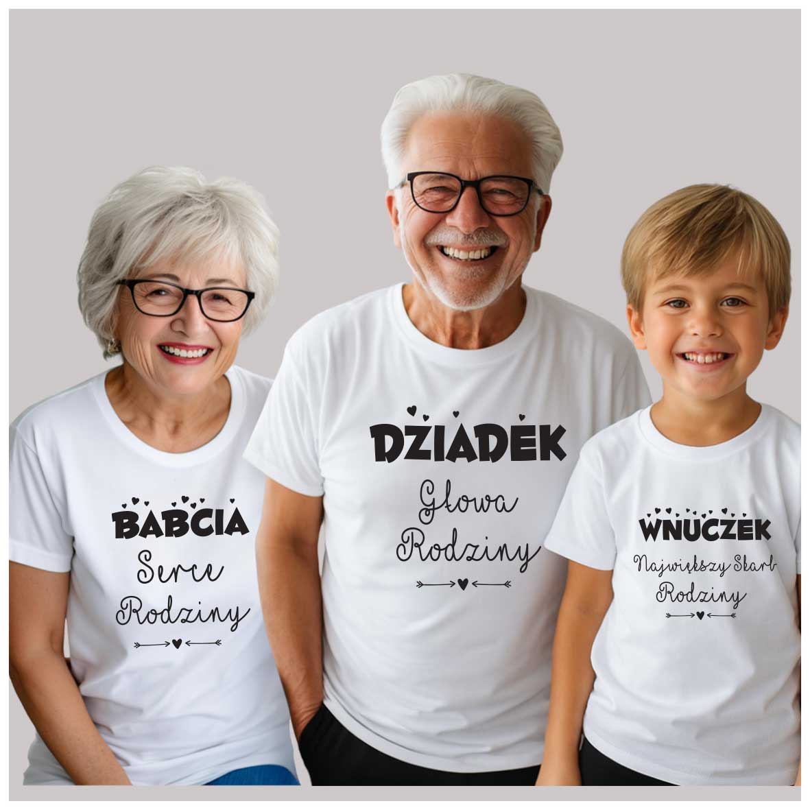Zestaw Koszulek Rodzinnych – Babcia, Dziadek i Wnuk/Wnuczka