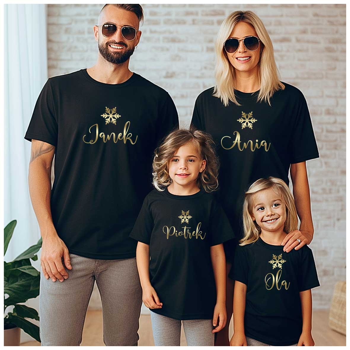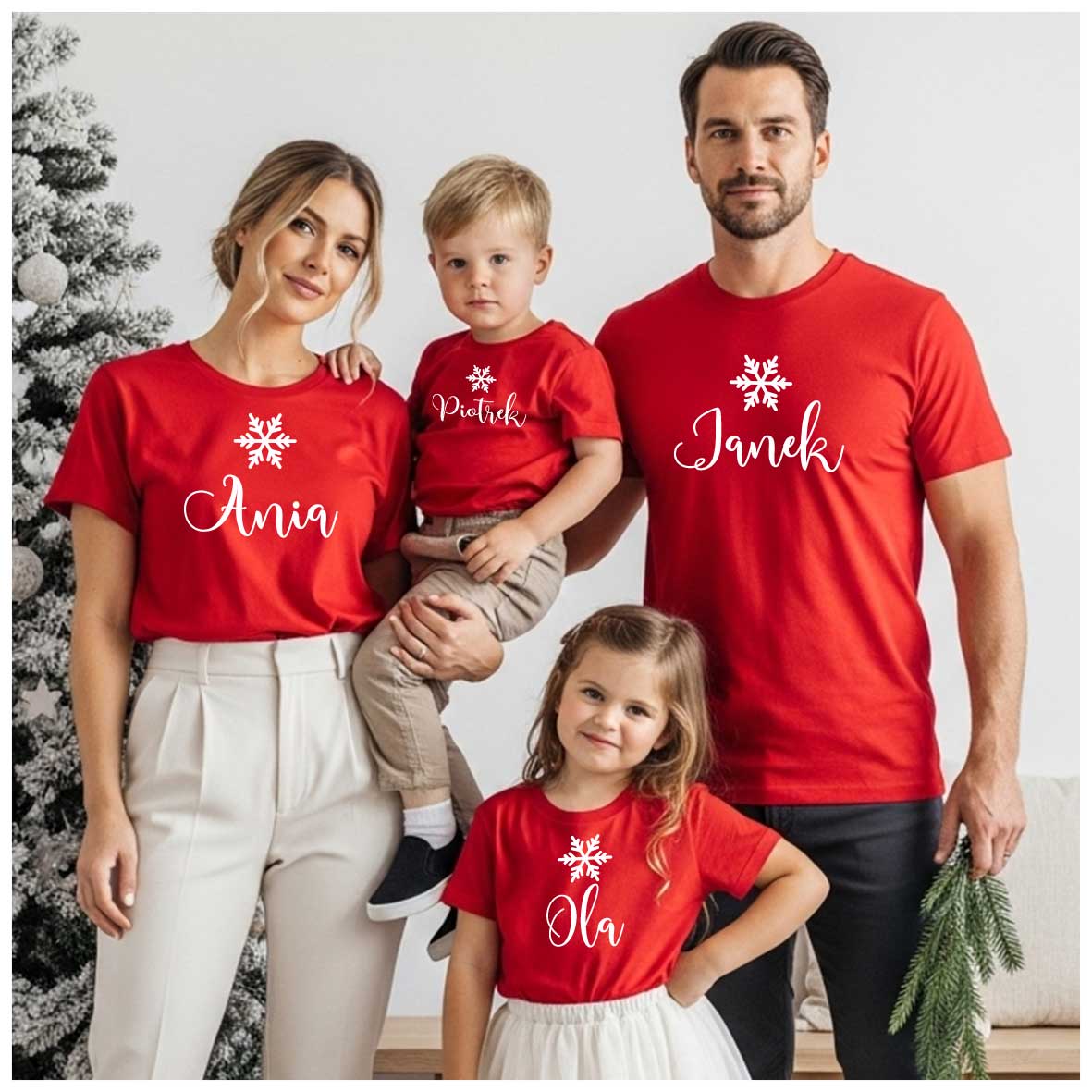 Śnieżynki – Koszulki świąteczne dla rodziny 2+2