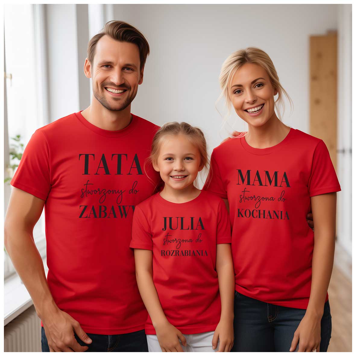 Stylowy komplet koszulek dla całej rodziny! Idealny na wspólne wyjścia, sesje zdjęciowe i wyjątkowe chwile. Wzory dopasowane tematycznie – bo razem tworzycie najlepszy zespół!