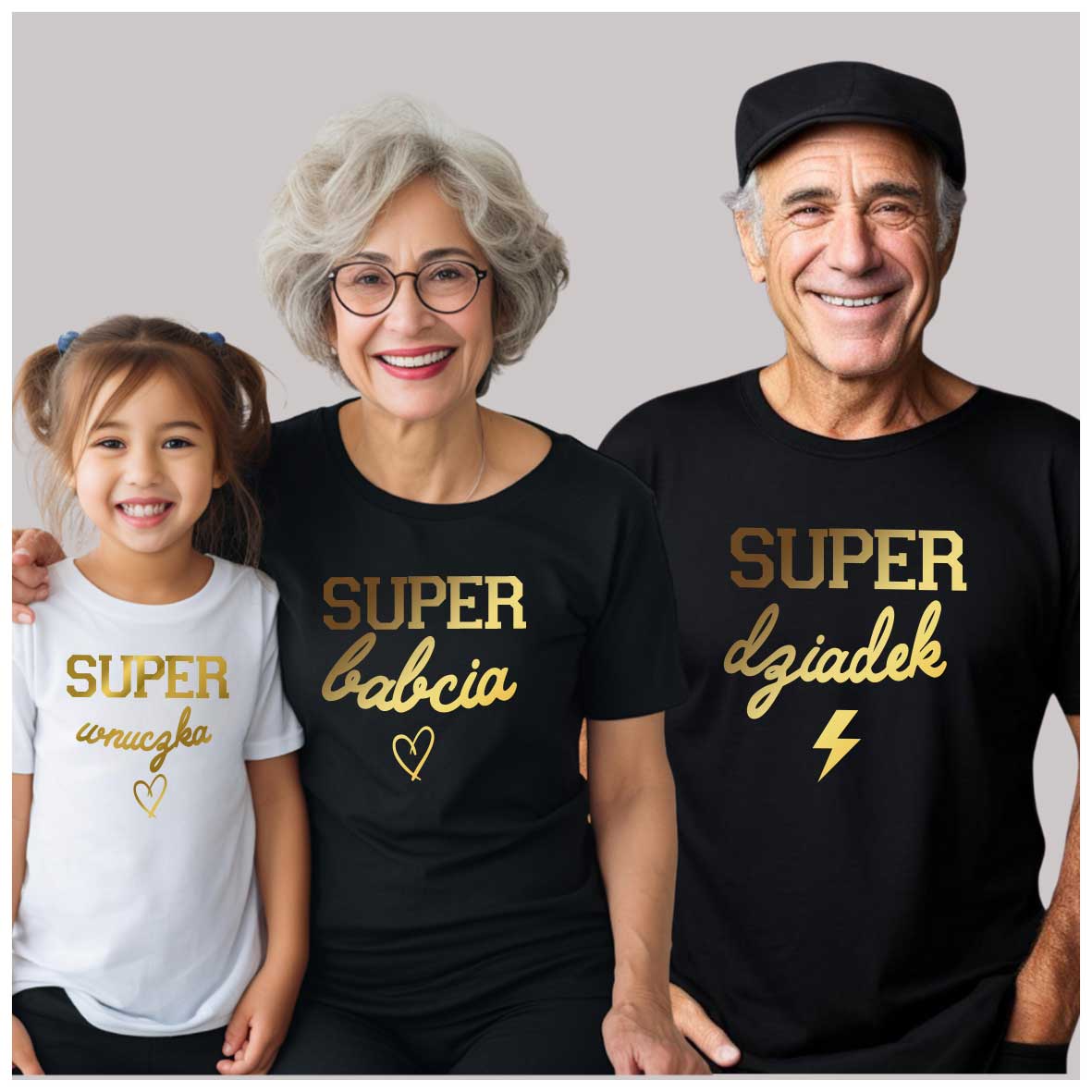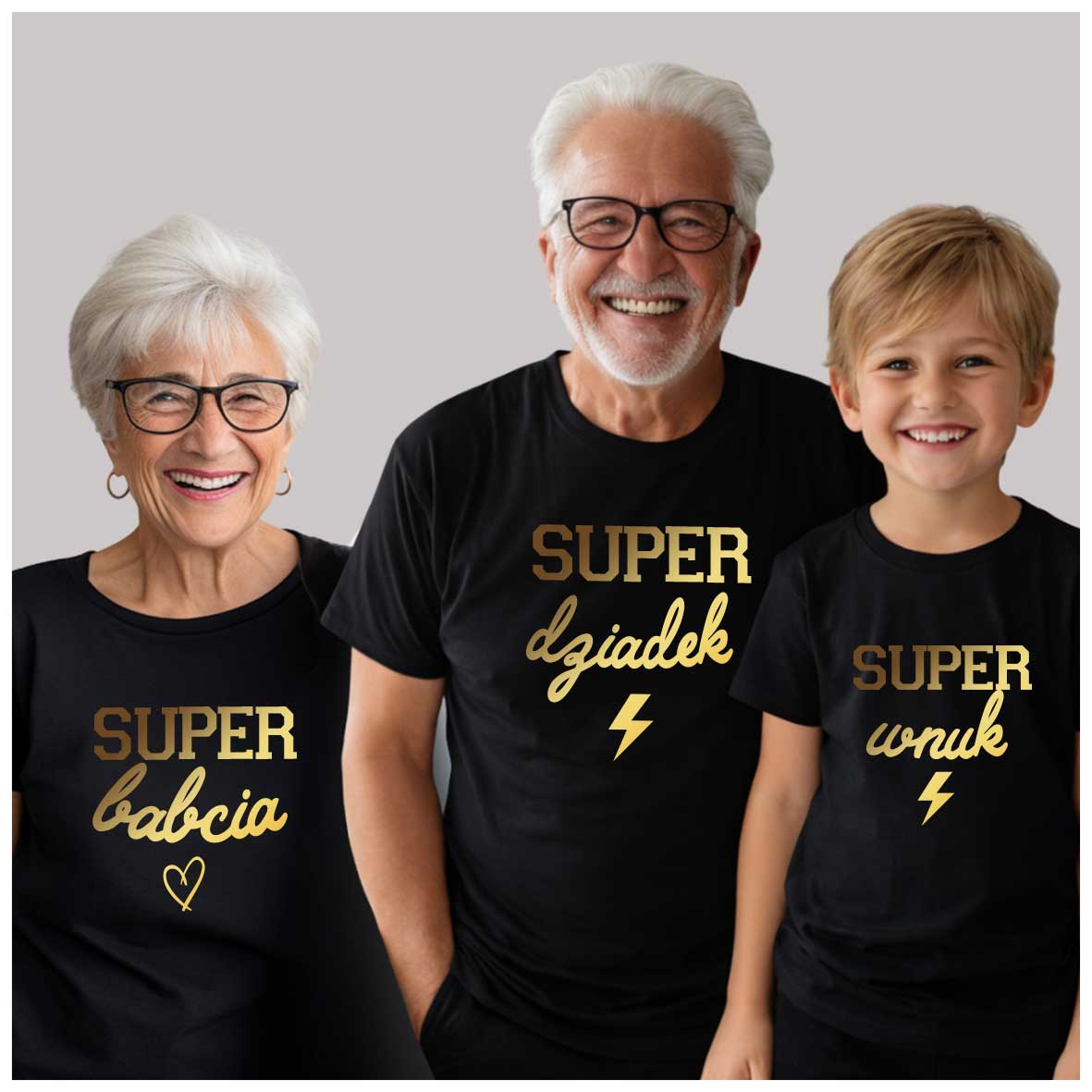 Podkreślcie wyjątkową więź międzypokoleniową dzięki zestawowi dopasowanych koszulek rodzinnych! Ten trzyosobowy komplet zawiera koszulki dla babci, dziadka oraz wnuka lub wnuczki (do wyboru rozmiary dziecięce – od niemowlaka do nastolatka). Wspólny nadruk lub tematyczne napisy sprawią, że Wasza rodzina będzie wyglądać spójnie i stylowo – na co dzień, na wakacjach, podczas rodzinnych spotkań czy sesji zdjęciowych.