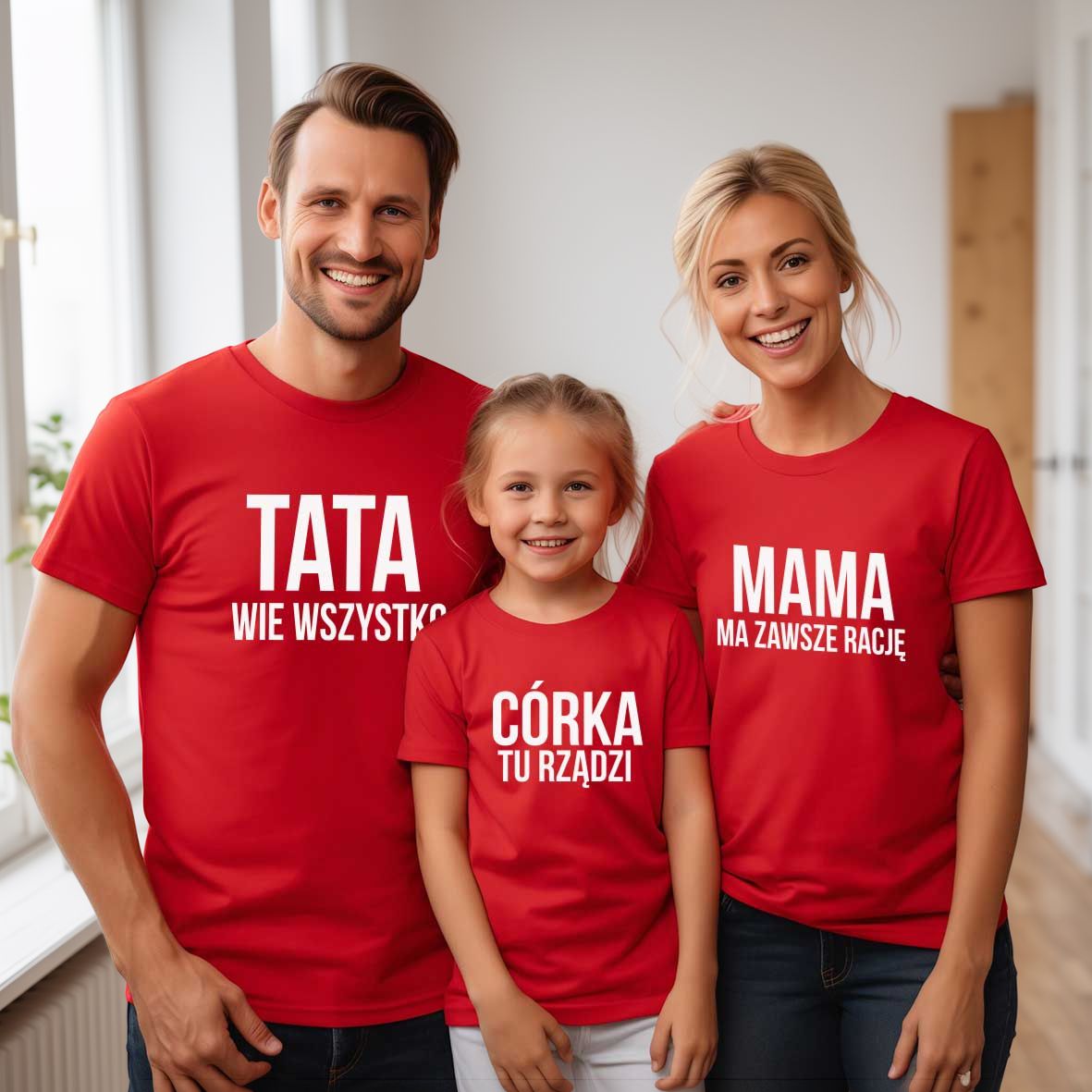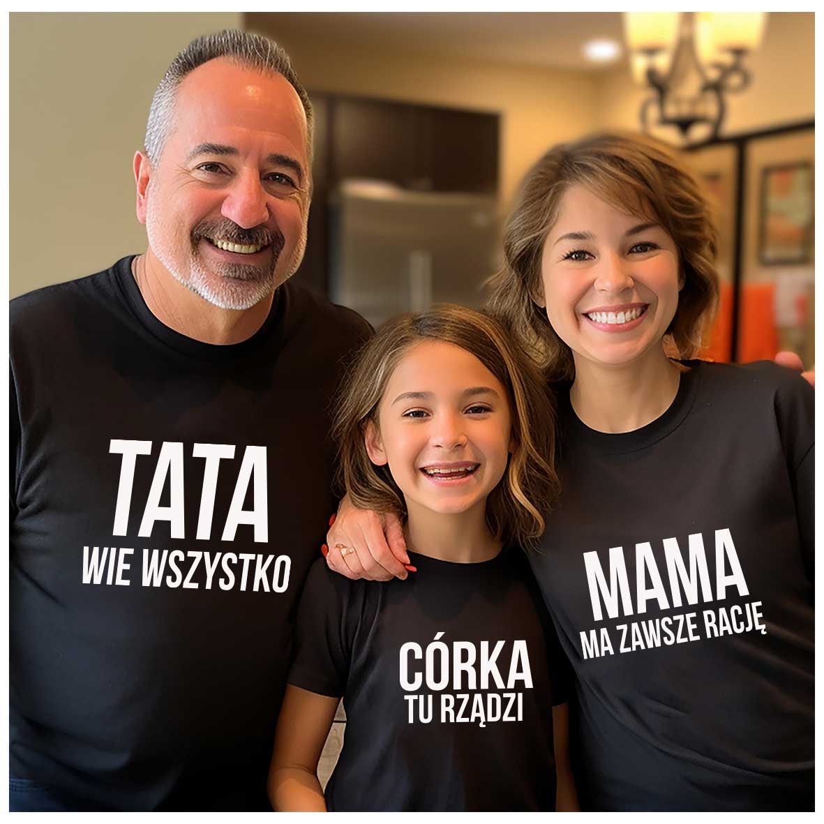 Tata wie wszystko mama ma zawsze rację córka tu rządzi – Zestaw koszulek dla rodziny