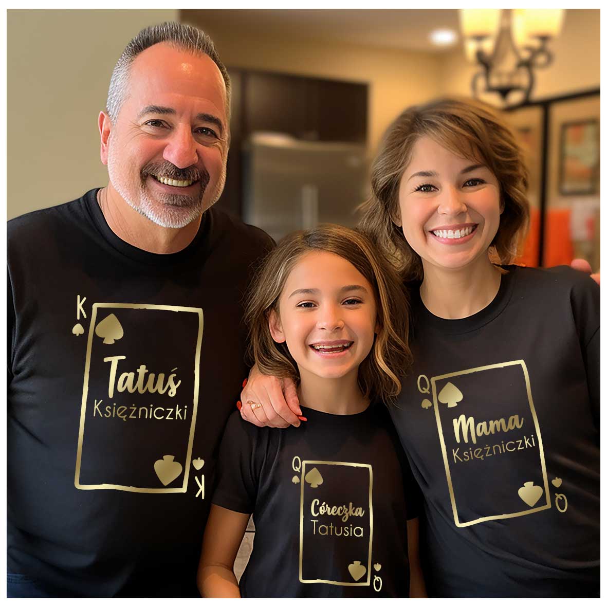 Stylowy komplet koszulek dla całej rodziny! Idealny na wspólne wyjścia, sesje zdjęciowe i wyjątkowe chwile. Wzory dopasowane tematycznie – bo razem tworzycie najlepszy zespół!