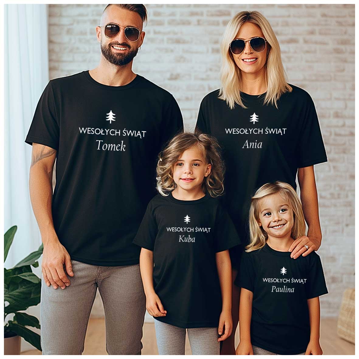 Wesołych świąt + imię – Koszulki świąteczne dla rodziny 2+2