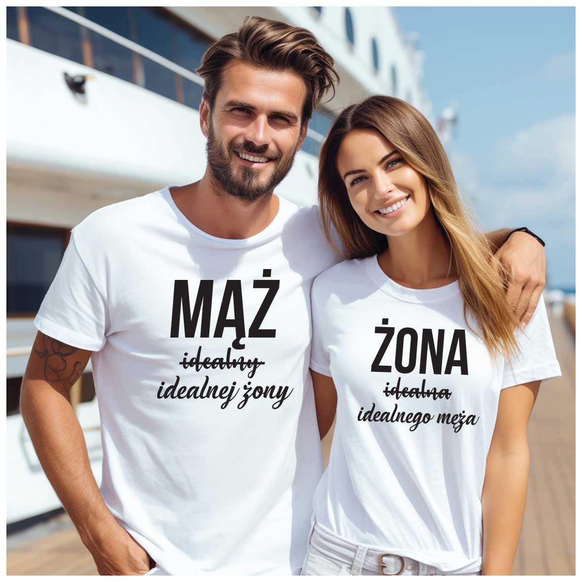 Żona idealnego męża i Mąż idealnej żony – zestaw koszulek dla pary